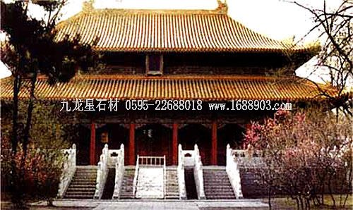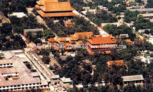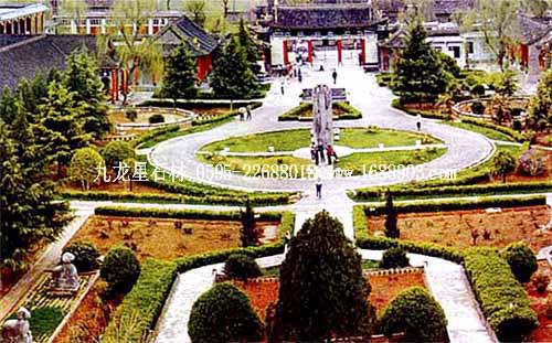 孔廟位于山東省曲阜市南門內,是歷代祭祀孔子的廟宇,建筑規模宏大,雄偉壯麗。其平面呈長方形,總面積327.5畝,南北長1120米。整個孔廟的建筑群以中軸線貫穿,左右對稱,布局嚴謹,共有九進院落。全廟共有五殿、一祠、一閣、一壇、兩堂、十七碑亭、五十三門坊,共計有殿廡四百六十六間。孔廟內最為著名的建筑有:欞星門、二門、奎文閣、杏壇、大成殿、寢殿、圣跡堂、詩禮堂等。杏壇,傳為孔子講學處,壇旁一株古檜,稱“先師手植檜”;大成殿為孔廟的主殿,殿內正中奉祀孔子塑像,兩旁為4配和12哲的塑像;東西廡殿原供孔子弟子及儒家歷代先賢;故宅井后的“魯壁”為秦始皇焚書坑儒時,孔子第九代孫孔鮒收藏《尚書》、《禮記》、《論語》、《孝經》等書的夾墻。孔廟與孔府、孔林并稱“三孔”,是中國現存最大的四大古建筑群之一。