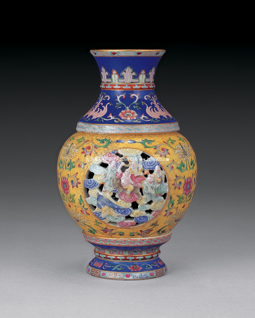 民國(guó) 粉彩透雕十八羅漢轉(zhuǎn)心瓶