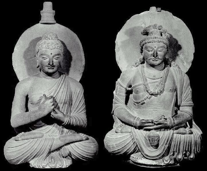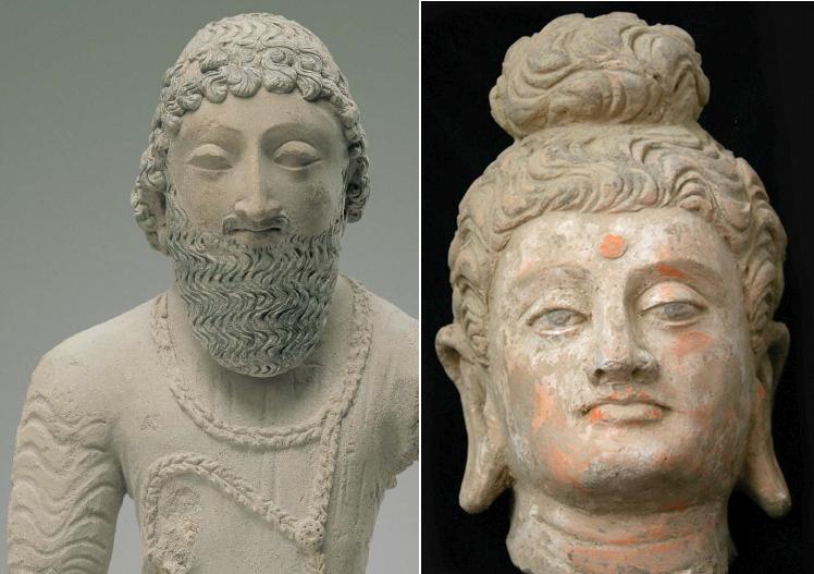 卍georgia Graeco希臘-Buddhist terracotta佛像陶藝(左圖);classical Hellenistic style希臘古典風格