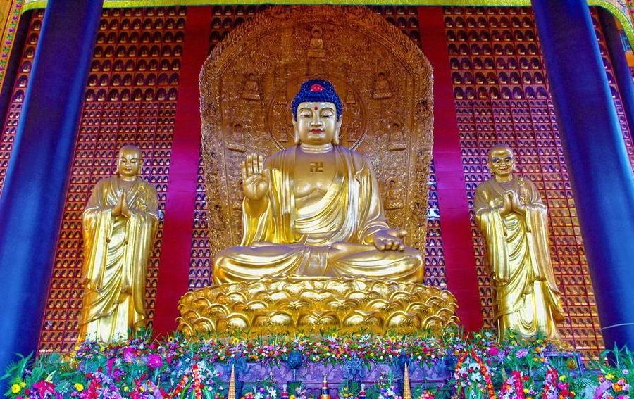 三佛──在大雄寶殿內三尊佛像并排而坐。不論漢傳及藏傳佛教,一律都是如來相。諸佛可從手印、標幟和座次來確認。