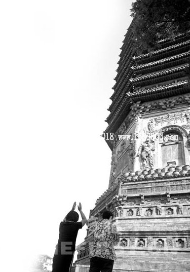 現在的天寧寺正在大修,平時是不開門的,記者第一次去的時候就吃了閉門羹。守門的師傅說,每逢初一和十五才會開放。
