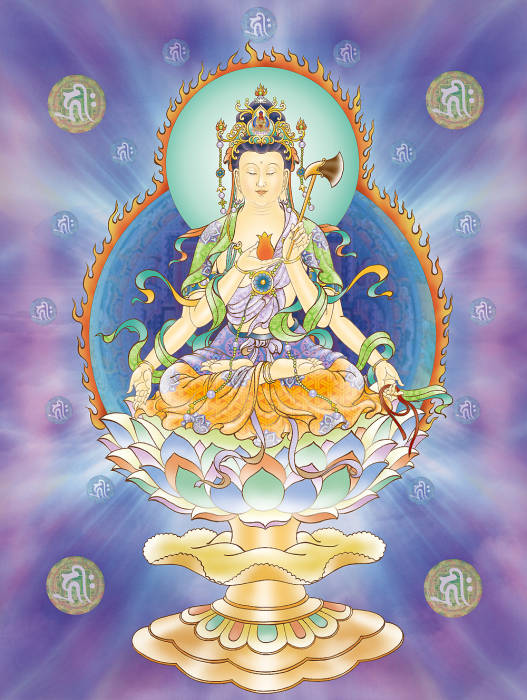 四、圓光觀音 無垢圓光觀世音 性凈明露常寂光 能伏眾生災風火 普明圓照遍十方
