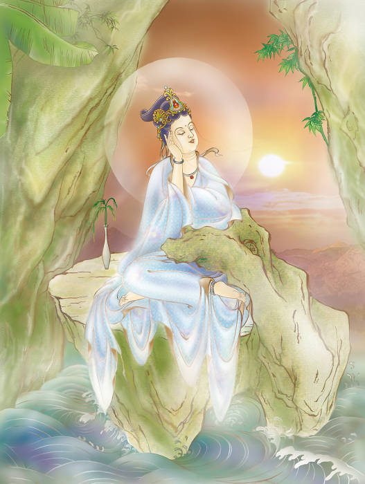 十二、水月觀音 吉祥水月觀世音 寶光常寂照三途 解結怨瞋八難苦 周徧寂湛大悲母