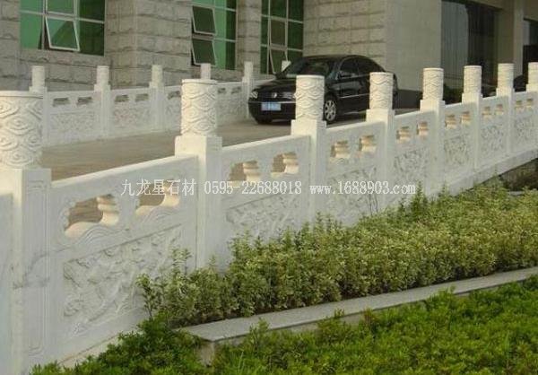 漢白玉石欄桿低欄高0.2~0.3米,中欄0.8~0.9米,高欄1.1~1.3米。欄桿柱的間矩一般為0.5~2米。其他規格樣式皆可訂做!