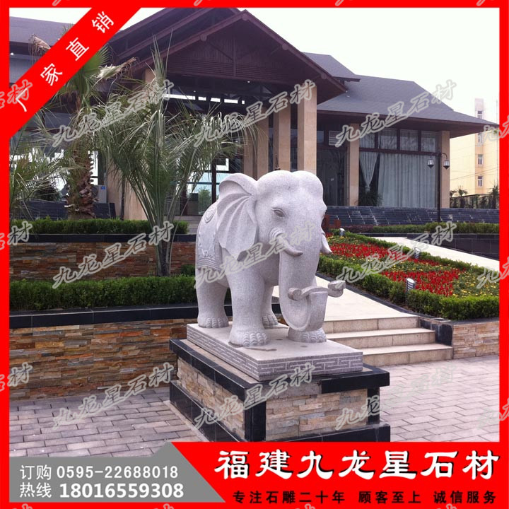 石雕大象也是吉祥如意的意思,吉祥如意就是吉“象”如意,心想事成的含義。大象是一個國家神圣的象征,也是觀音的坐奇,就是觀音的隨身隨行,故而也有去災辟邪,保佑自己,佑護他人的寓意。象諧“祥”之音,傳統習俗中,象代表了吉祥。“象”能給人間帶來祥瑞,象微天下太平。“象”即表示和平、美好和幸福。 大象力大魁武,性靈卻溫和柔順,相傳象為搖光之星生成,能兆靈瑞,古佛就是乘象從天而降;只有在人君自養有節時,靈象才出現。