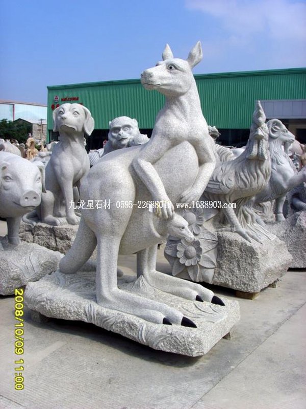 石雕袋鼠含踏板總高1.9米。材料為天然花崗巖。