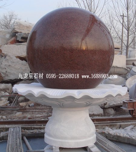 印度紅花崗石風水球直徑約為0.6米,底座采用湖南漢白玉,蓮花盤直徑約0.8米,總高約0.6米。